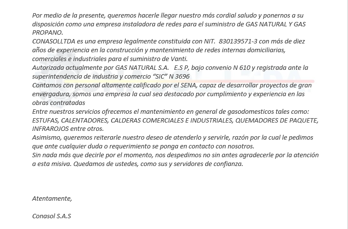 Misión de la empresa Conasol S.A.S